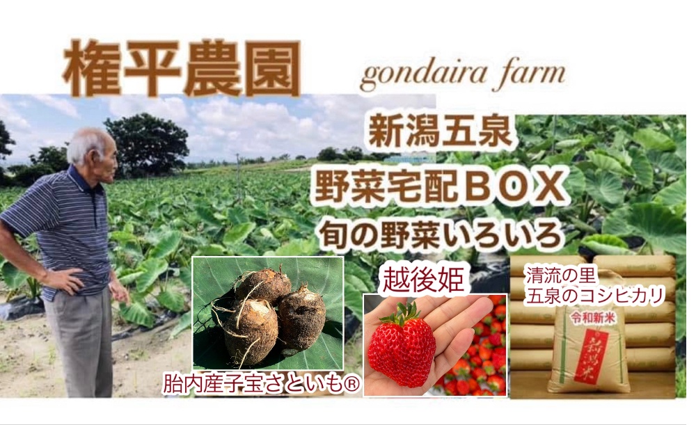 | 宅配 | ○越後姫 4パック〜 ○胎内産子宝さといも®︎2Kg〜5kg〜 ○新潟県産.清流の里で育つ五泉コシヒカリ 新米 5kg.10kg30kg. ○旬の野菜BOX ご注文 ・お電話でのご注文 ・振込確認後発送 *返品不可 |